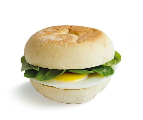 Bacon, egg, spinach & LEON-made ketchup on a lightly toasted, soft sourdough muffin.