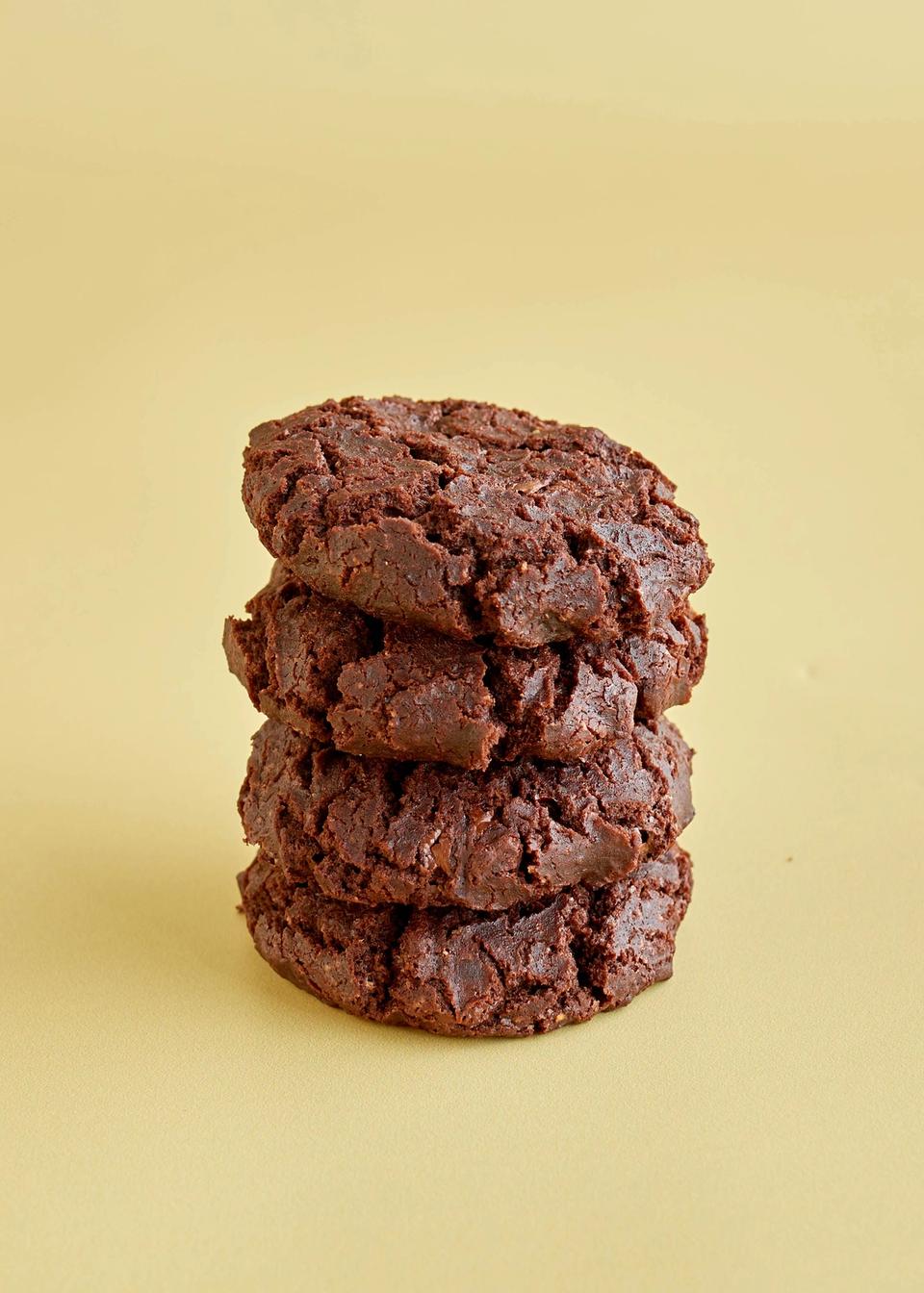Velvety smooth cocoa and vegan chocolate drops make for a gooey-centred cookie with crisp, almost caramel edges.