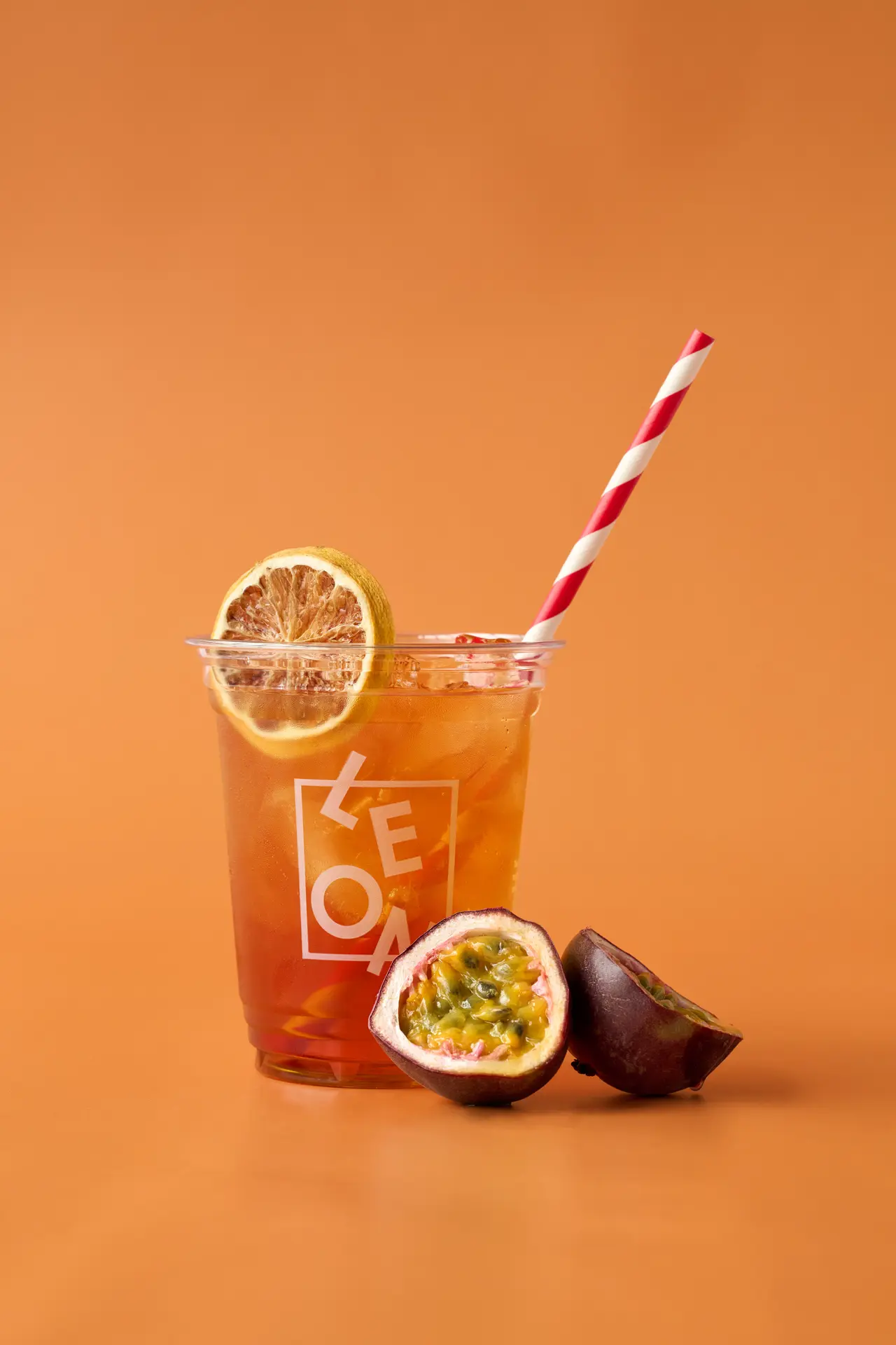 A refreshing iced lemon black tea with a tropical, passionfruit twist. Spill the (iced) tea.
