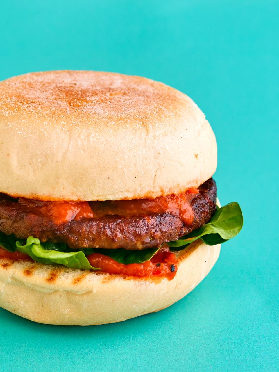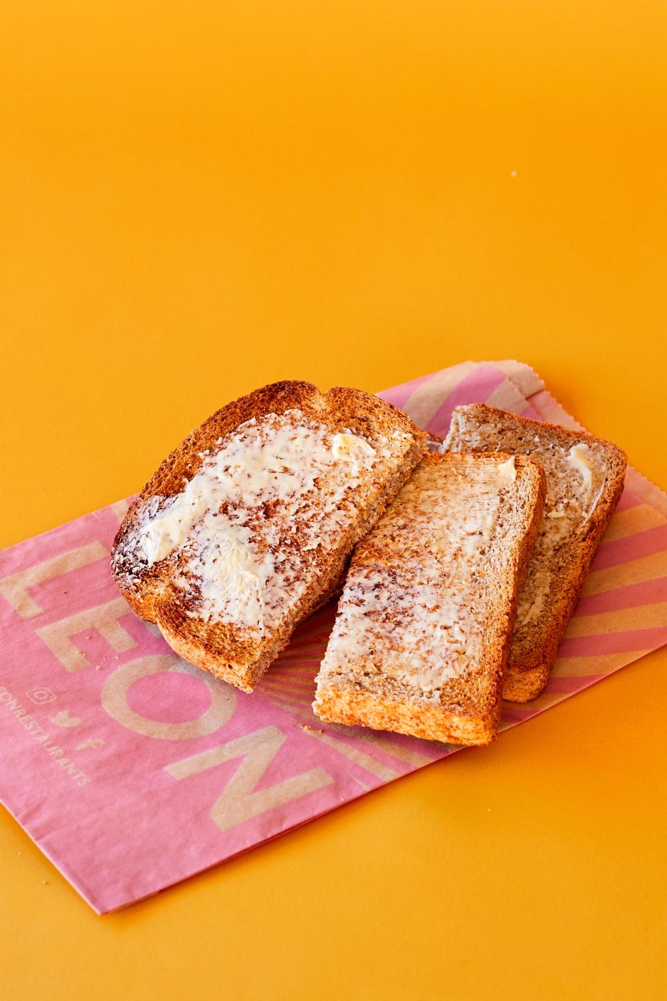 There’s muffin meaty about our plant-based, spiced sausage patty. Paired with LEON’s fruity tomato ketchup and fresh spinach in a lightly toasted sourdough muffin. Sorry not Saus-y. *Not available as gluten-free option