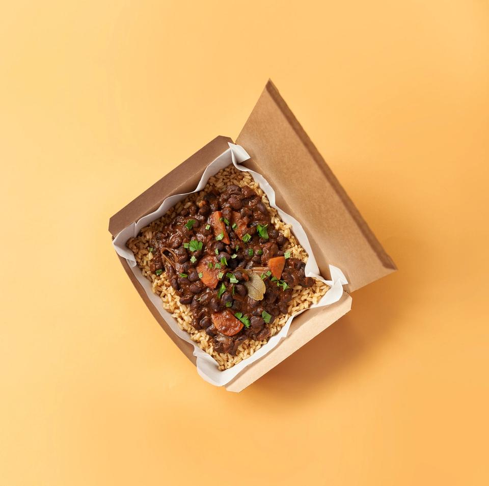 A vegan take on the traditional Brazilian feijoada. Slowly simmered black beans, carrots and onions spiced with sweet and smoked paprika, and oregano. Served on Italian brown rice.