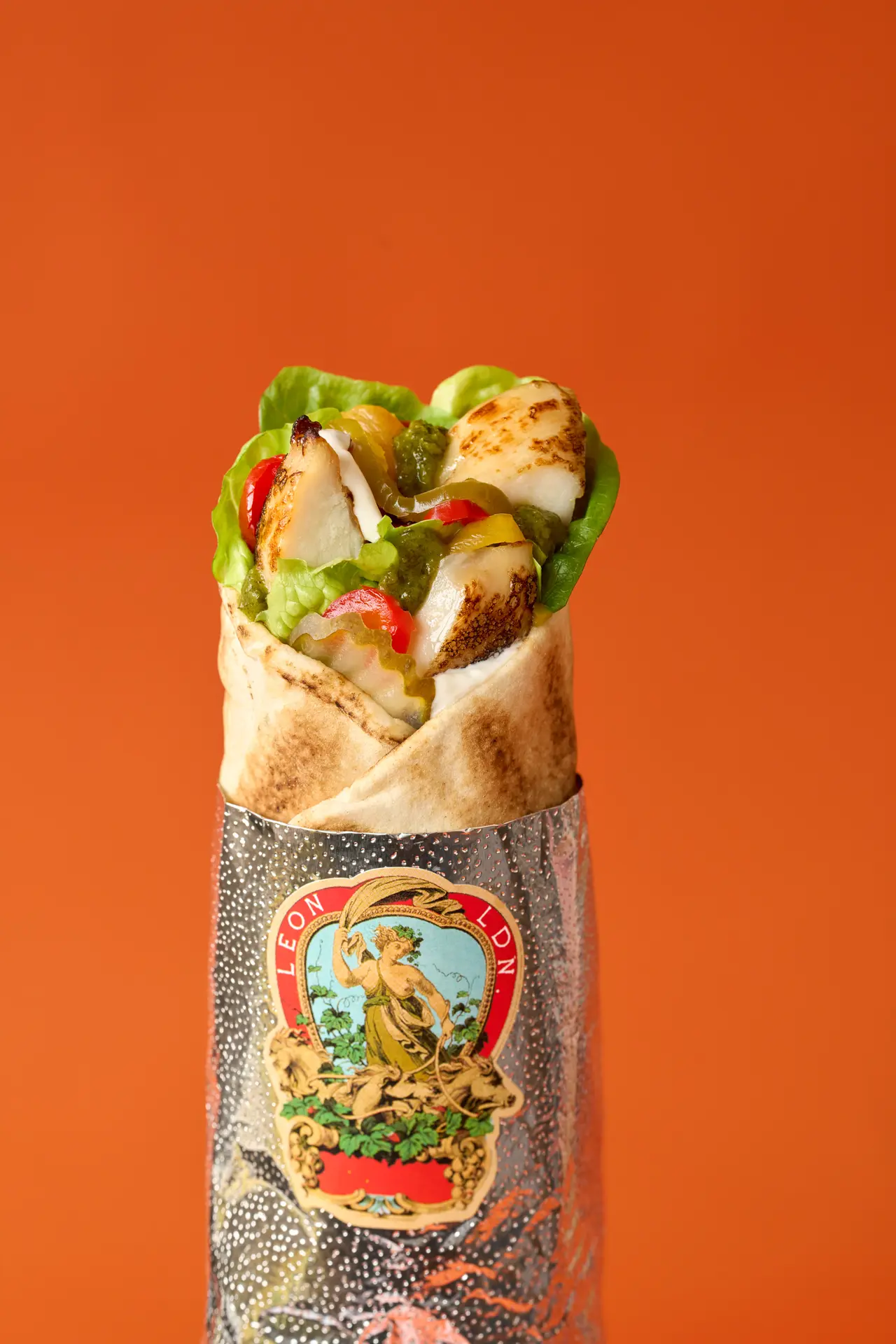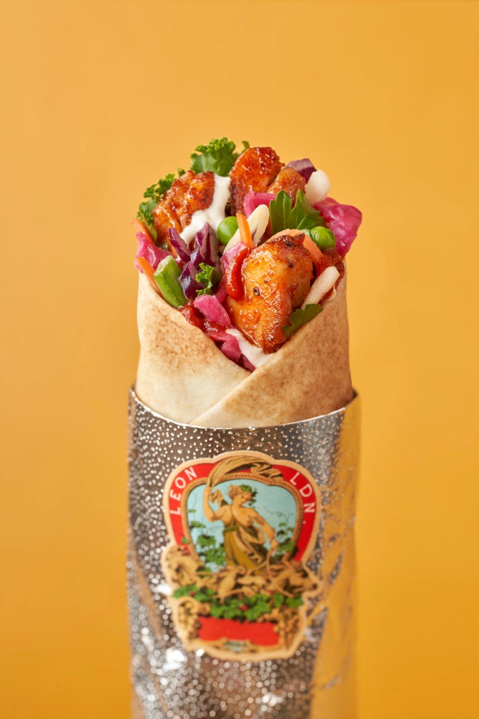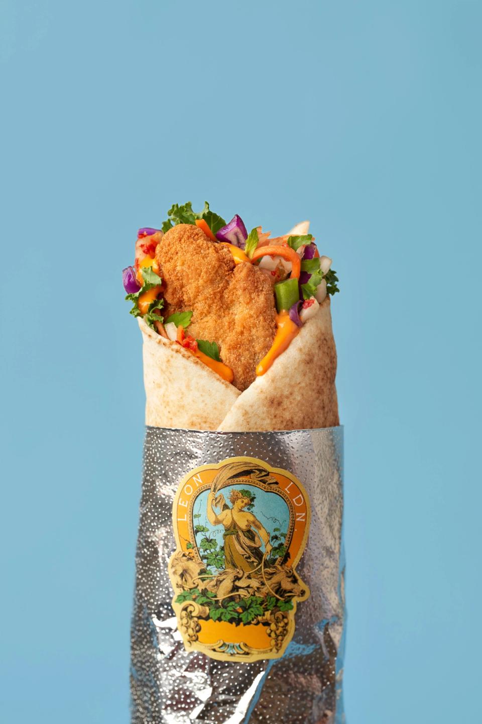 Chargrilled chicken, our Firecracker sauce with a spicy kick, pickled peppers, gherkins, LEON Aioli, and crisp lettuce. Now, that's fire.