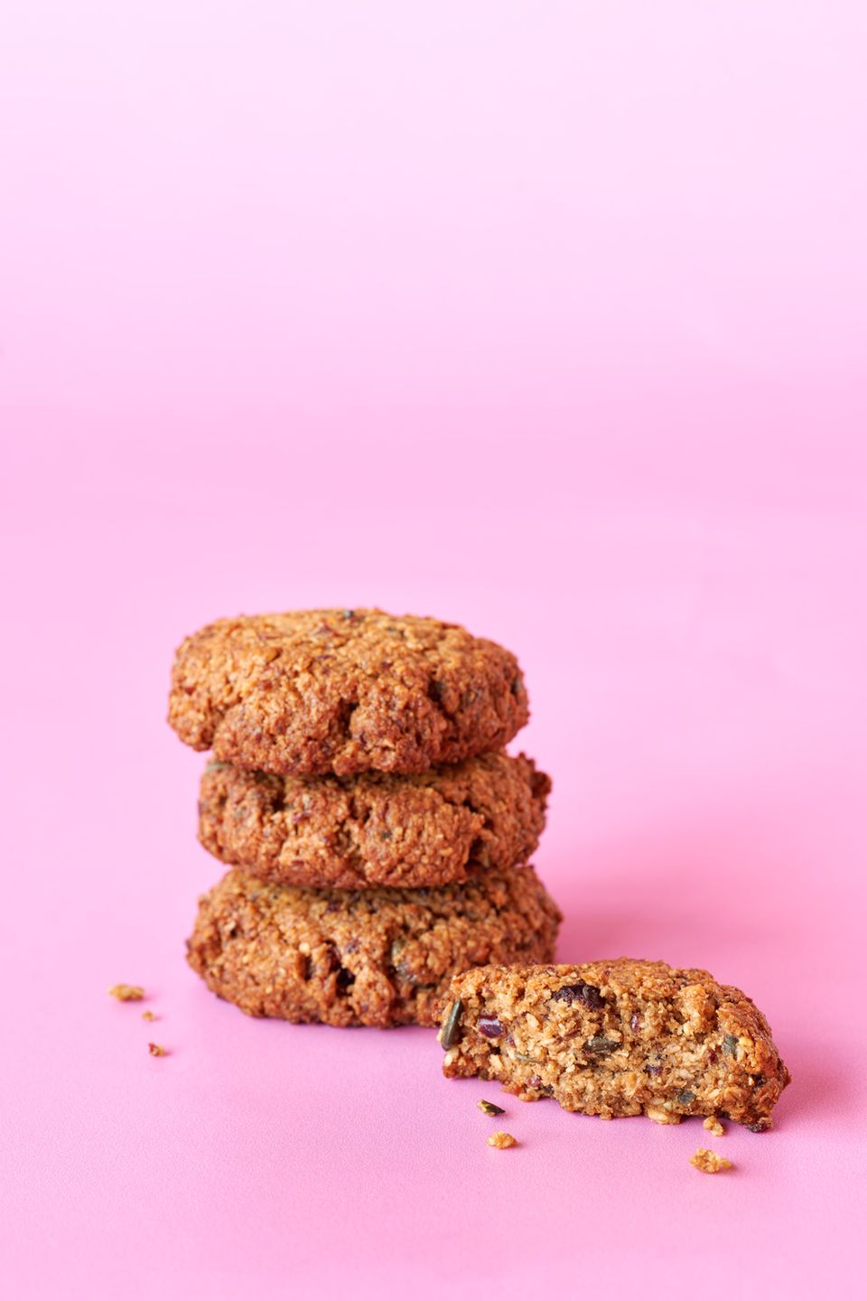 Like a posh hobnob. A poshnob, if you will. This vegan bake is packed with oats, cranberries, agave and pumpkin seeds. Good for dunking.