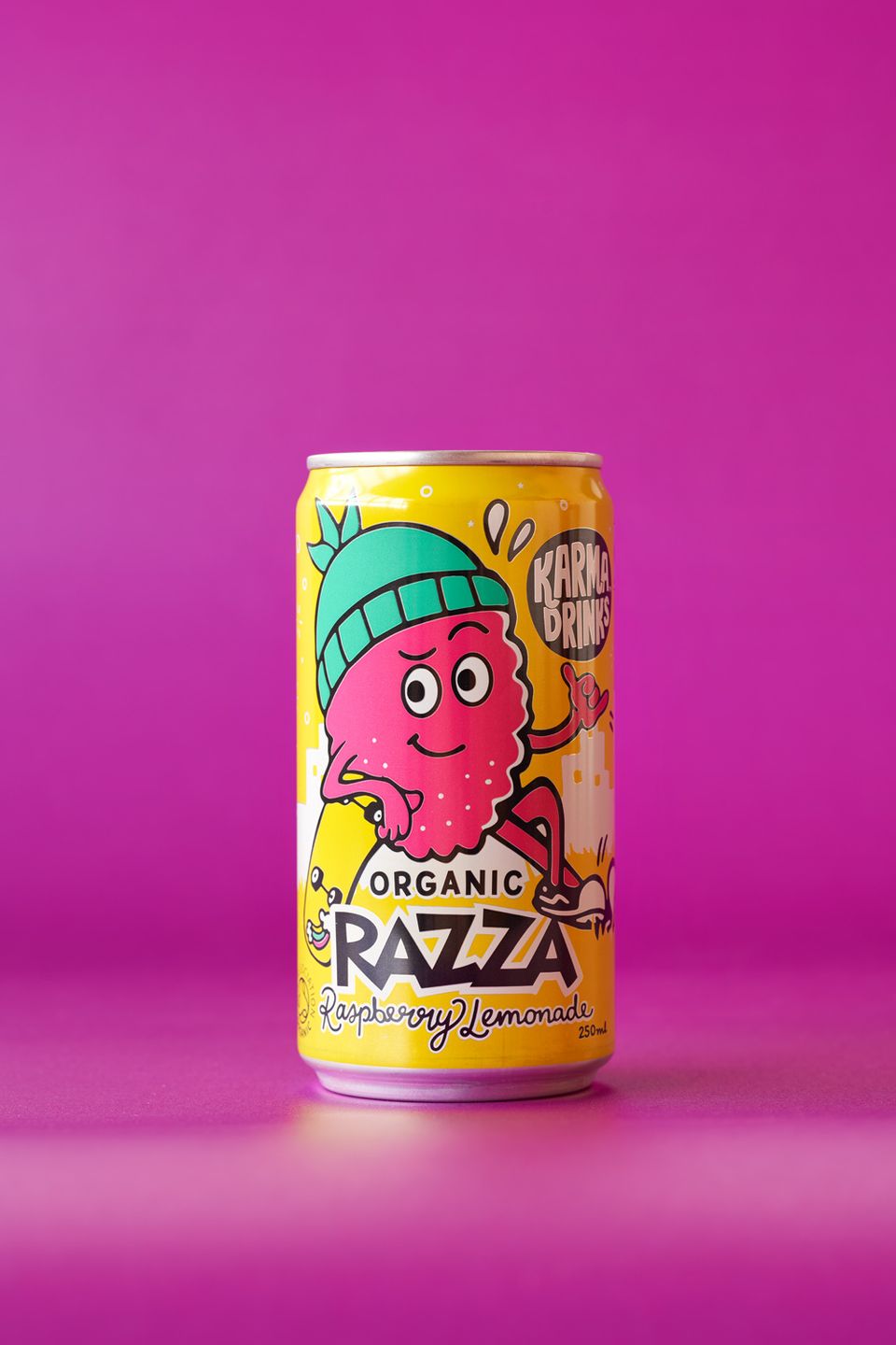 Lemons get a sweet and tangy twist in Razza, punky pink lemonade. Fruity, fizzy and fearless, he gets his feel-good flavour from natural raspberry, organic lemons and Fairtrade organic cane sugar - so he tastes good and does good too.