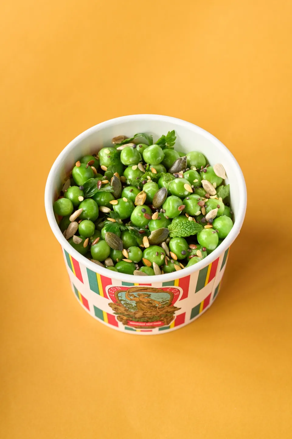 A crunchy side of peas, our 7 seed mix, and dressing. Peas out.