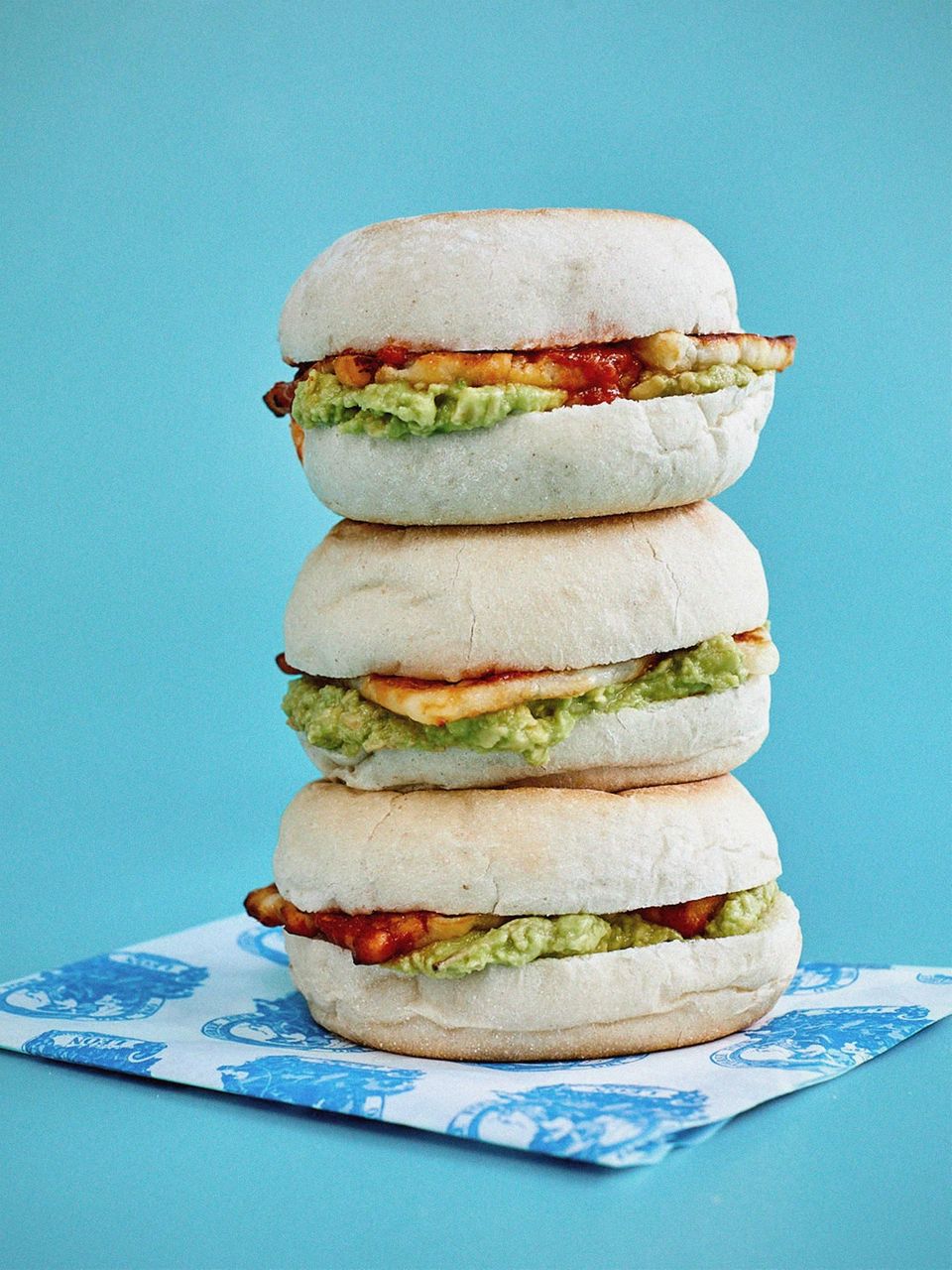 Freshly smashed avocado and grilled halloumi, served with a touch of chilli sauce in a toasted sourdough muffin. Smashing.