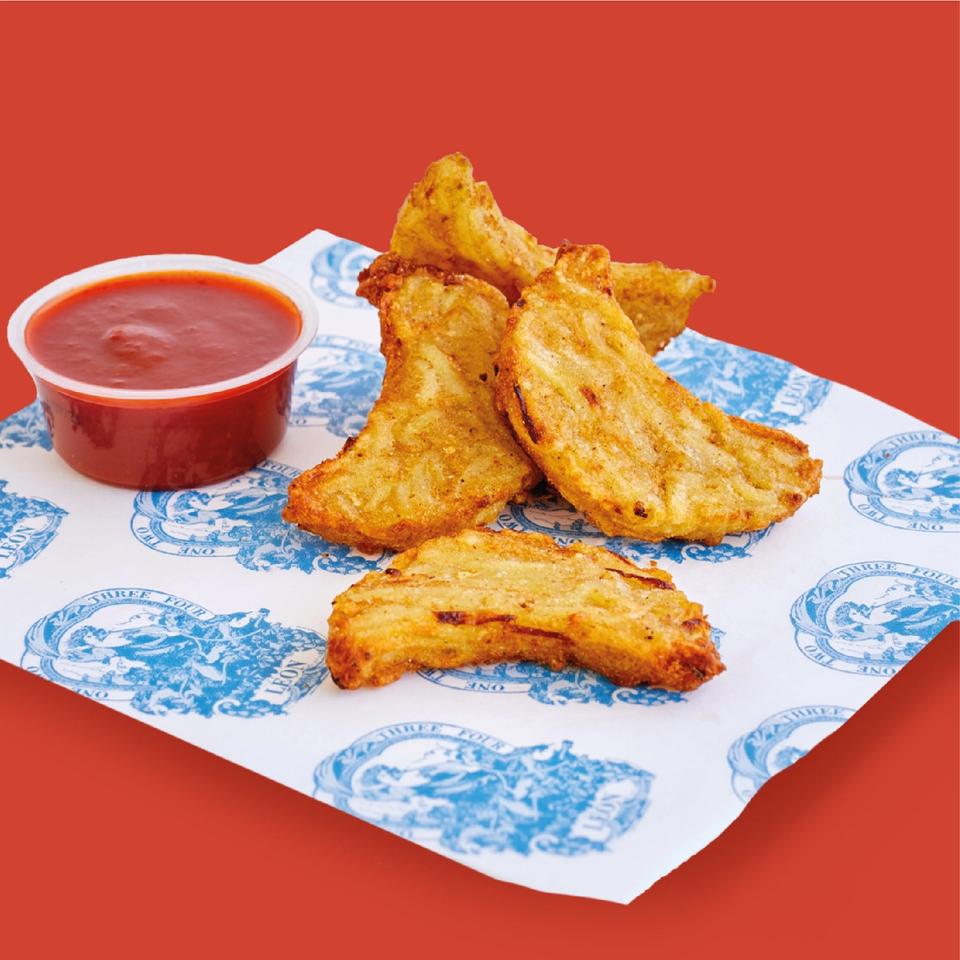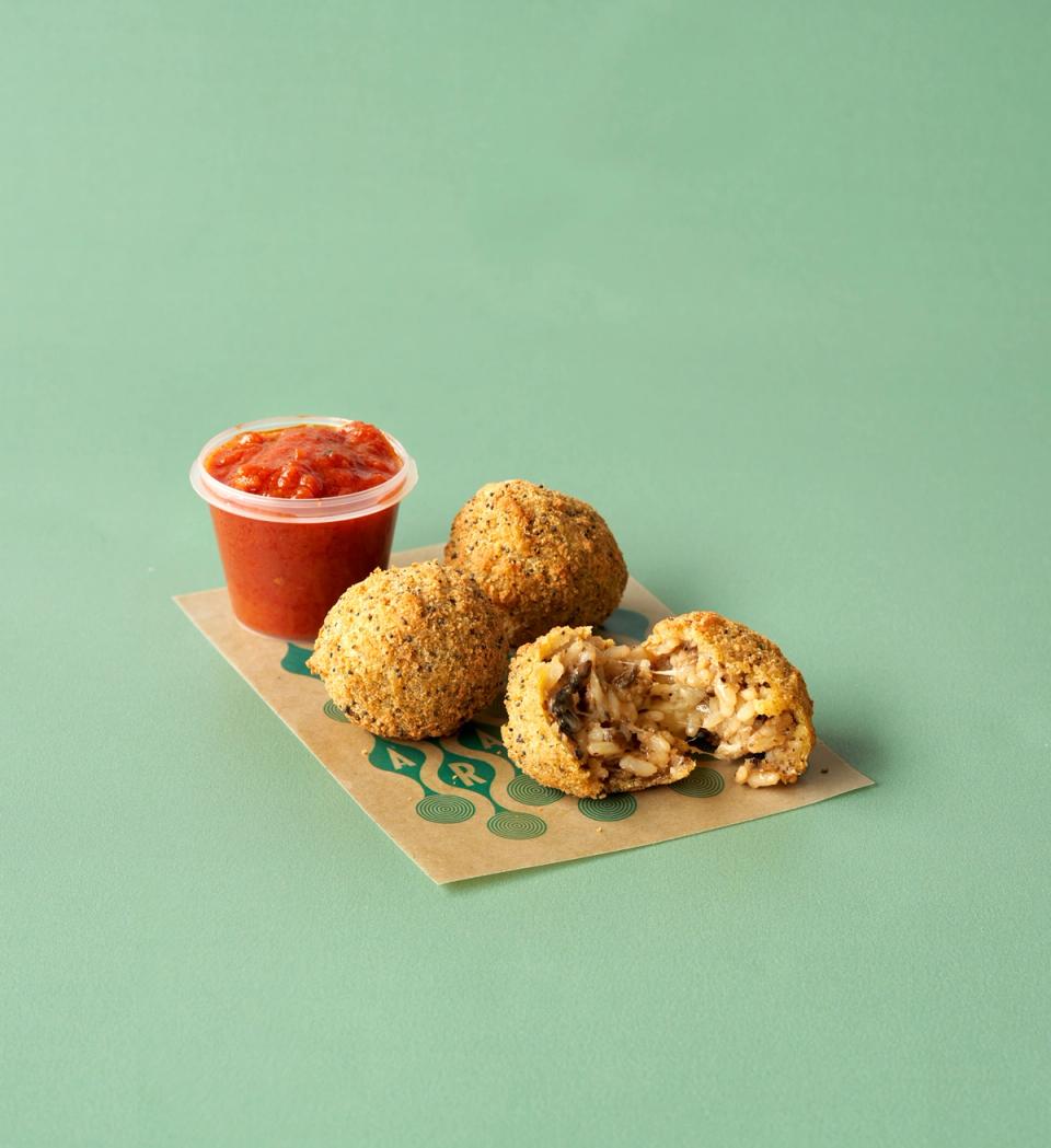 Mozzarella and truffle with chestnut and porcini mushrooms in a crisp gluten-free crumb. Served with LEON’s famous tomato sauce for dipping. Really nice rice.