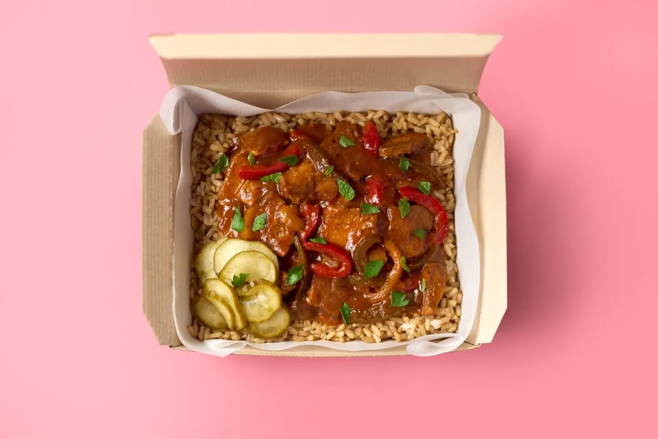 Meet your new Seoul mate: Tender pork collar in a gochujang chilli-ginger BBQ sauce, served on brown rice with yuzu pickled cucumbers.