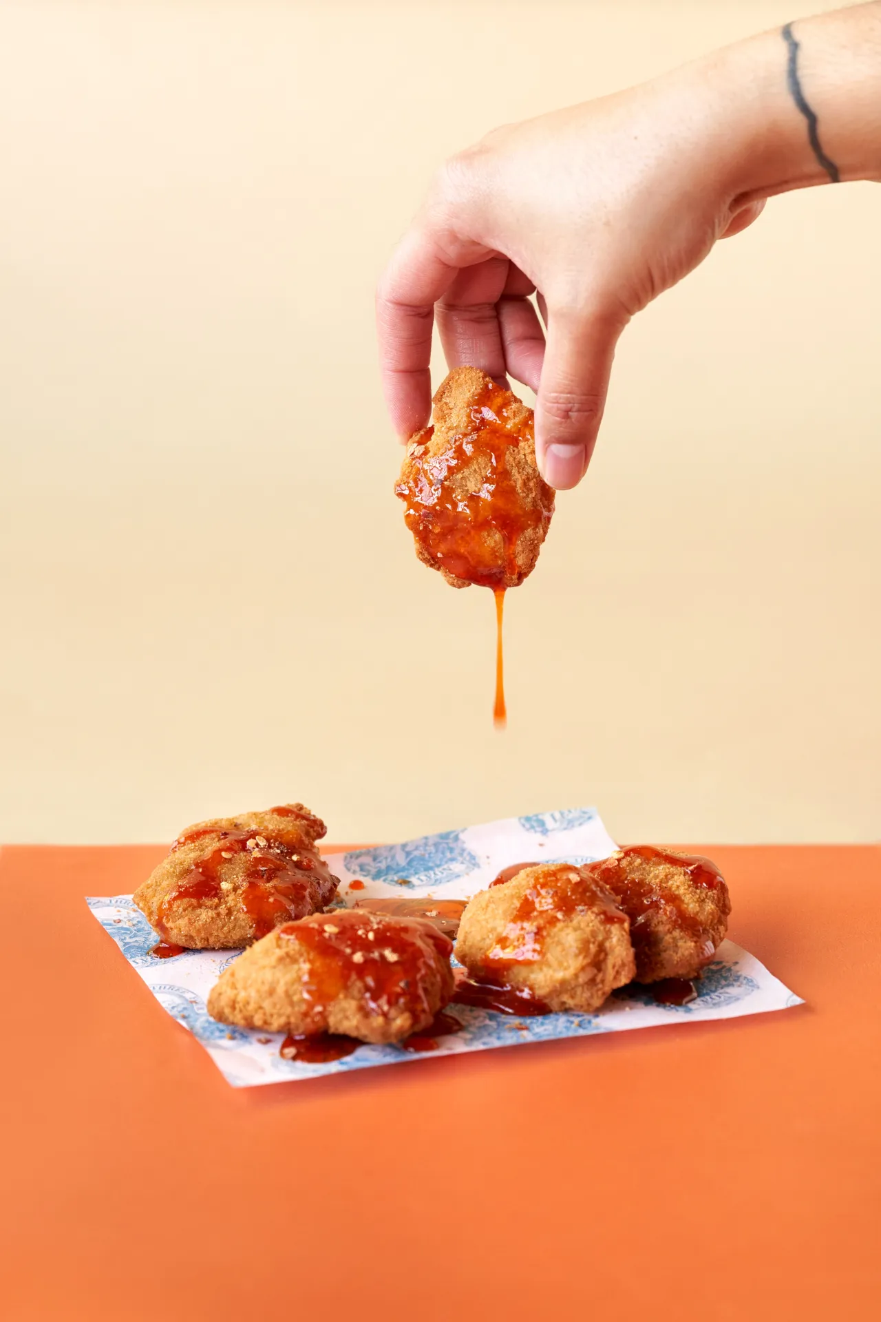 Our gluten-free chicken nuggets drizzled with a spicy Sriracha hot honey and finished with a fiery seasoning. It's GFC's hotter twin.