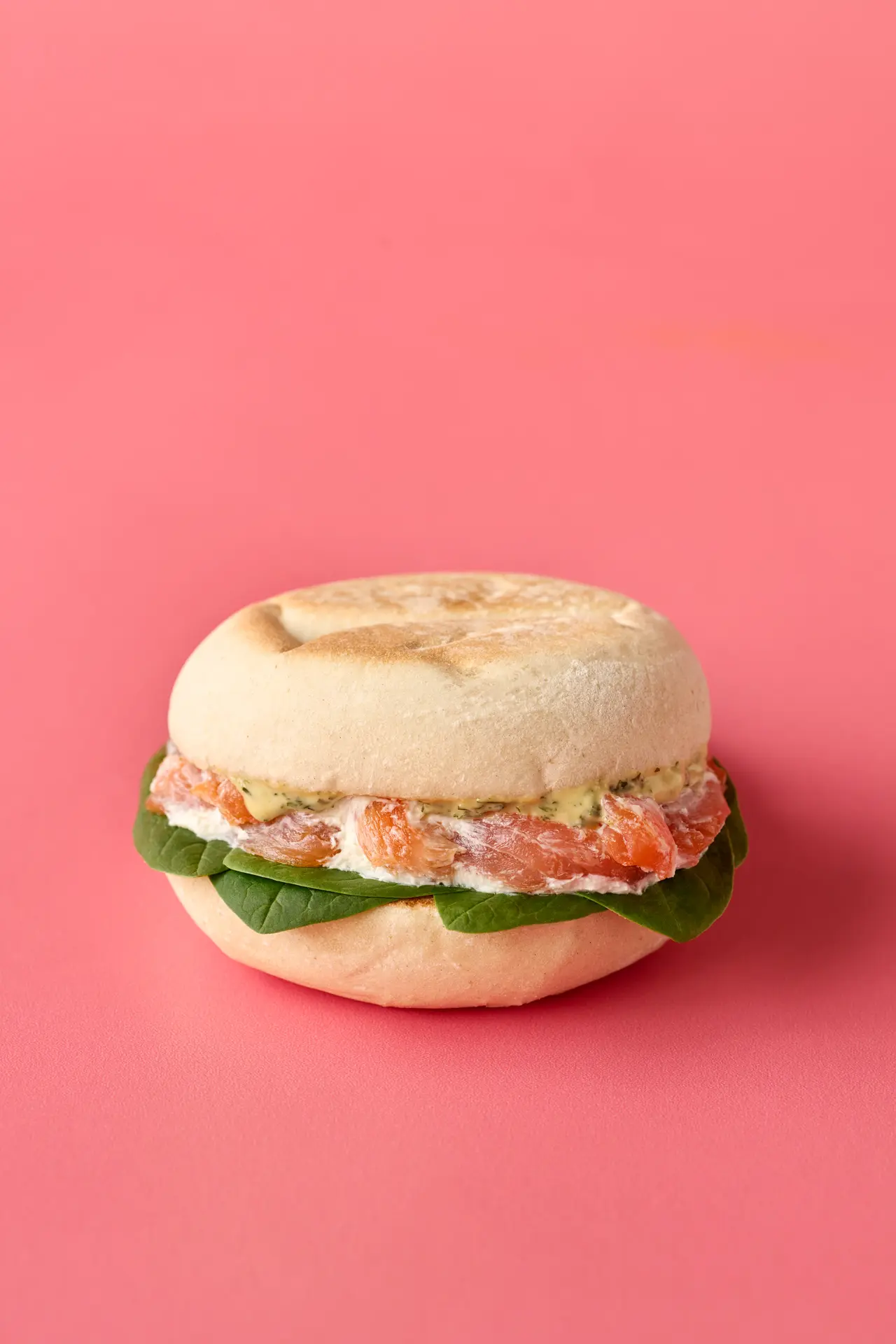 Sustainably-sourced smoked salmon and rich cream cheese, with our Golden Goddess sauce. Paired with fresh spinach in a toasted sourdough muffin. So-fish-ticated.