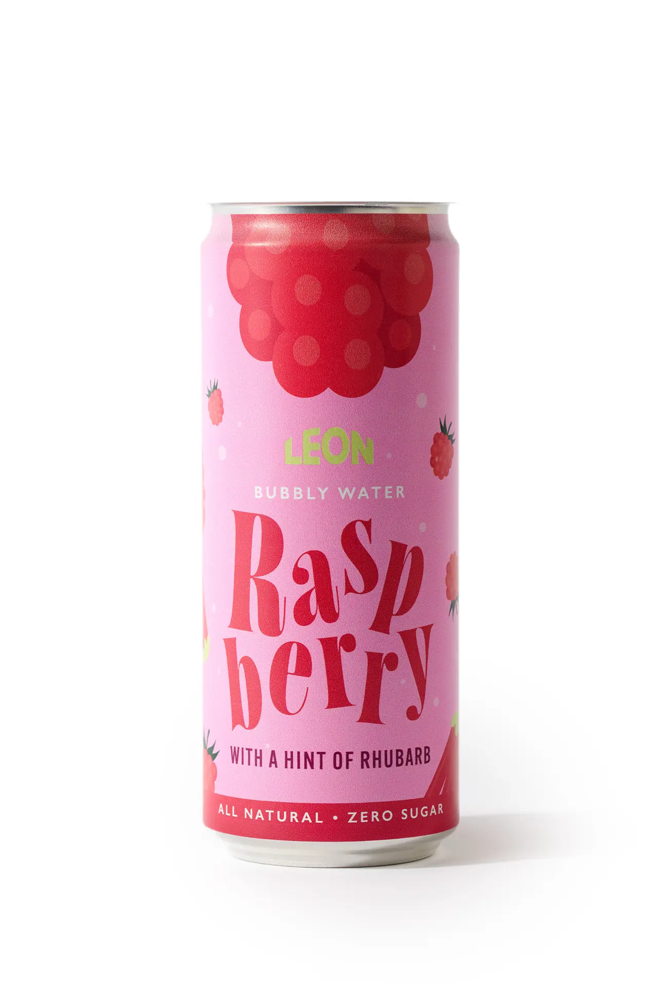 LEON's very own sparkling water, flavoured with raspberry and a hint of rhubarb. Let's get fizz-ical.